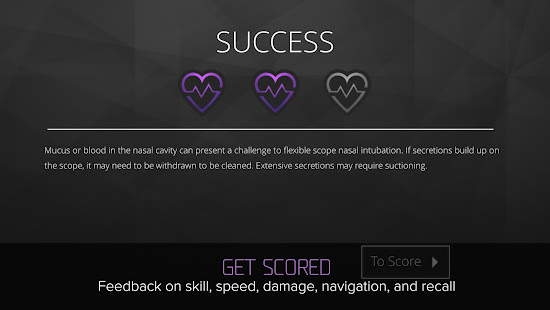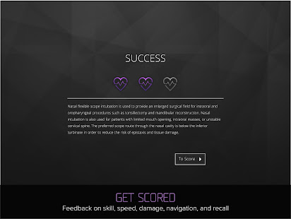 Aplikasi kami menyediakan realisme medis yang belum pernah terjadi sebelumnya, diaktifkan oleh simulasi akurat dinamika jaringan manusia, optik ruang lingkup realistis, dan cairan bergerak untuk menciptakan kembali prosedur saluran napas yang mirip kehidupan. Kami juga menyediakan modalitas baru untuk melanjutkan pendidikan kedokteran (CME), menawarkan AMA PRA Kategori 1 Kredit(TM) untuk menyelesaikan prosedur jalan napas dalam aplikasi.
