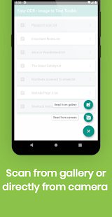 Konverter foto ke teks dibuat sederhana dengan aplikasi pemindai ocr yang mudah. Yang harus Anda lakukan adalah memindai gambar dengan kamera Anda atau membuka dari galeri dan membiarkan pemindai teks gratis ini bekerja dengan ajaibnya. Menggunakan pembelajaran mesin dapat dengan mudah mengekstrak teks dari gambar dan memungkinkan Anda untuk menyimpan kata-kata yang diekstraksi sebagai file di ponsel Anda.