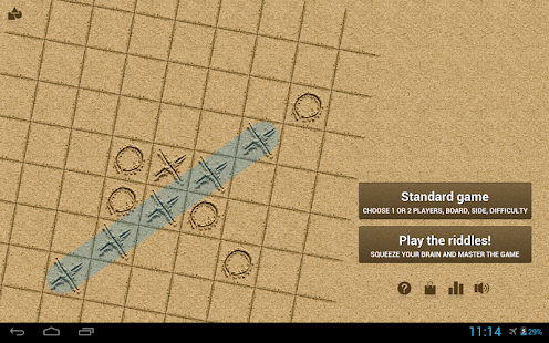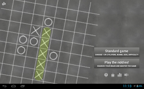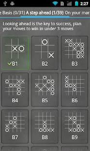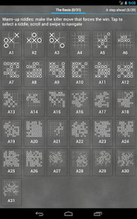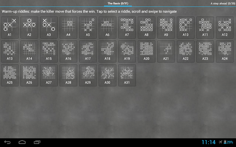 Tease your brain accepting the challenge and solve 200+ unique and carefully designed game riddles that will test your skills while progressively learning the common winning techniques and strategies in Tic Tac Toe and Gomoku. In riddles, you play an ongoing match against the artificial intelligence (AI) and have to win in less than the given amount of moves (Tic Tac Toe is of course trivial, but try five in a row -Gomoku- for a real challenge). You will soon discover the key of this game: playing the perfect moves leads to victory no matter the opponent. Try them out, they get more challenging and fun as you progress.