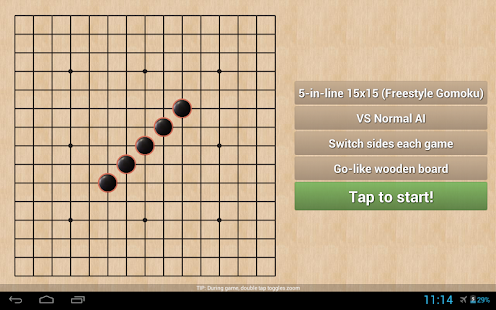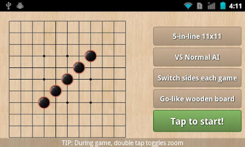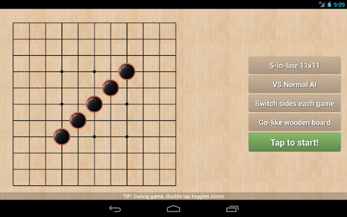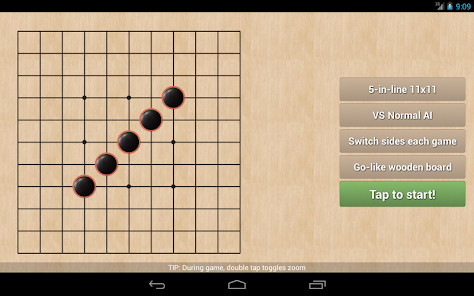 Play standard Tic Tac Toe, non-gravitational Four in a Line or Freestyle Gomoku in cool boards up to 15x15 made of wood, chalk (noughts and crosses), sand, neon glow lights and even Halloween pumpkins featuring multitouch scale and pan.