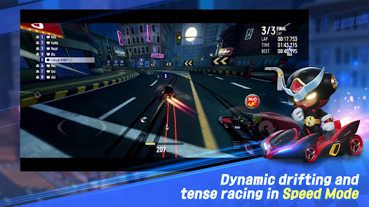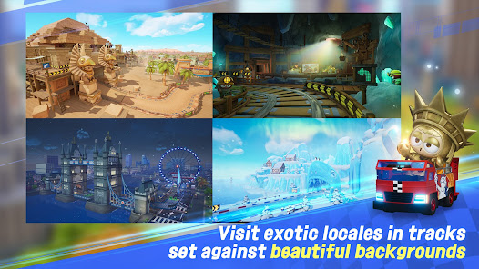 dan percepat lintasan dengan kart unik untuk melintasi papan peringkat dengan penuh gaya.