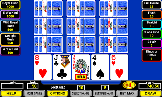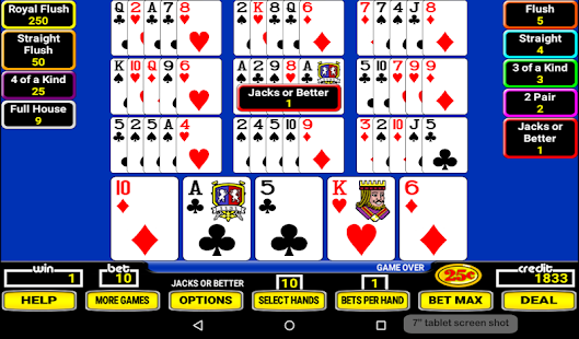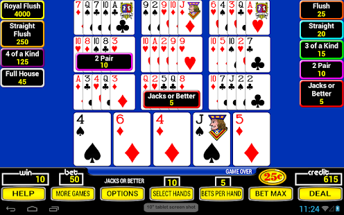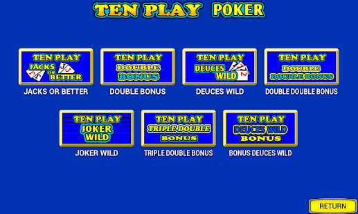 Ten hand multi-play video poker. Ten hands at once for ten times the action! Unlike slots machines, video poker allows the player to use skill to beat the house. Play this popular game just like in Vegas.