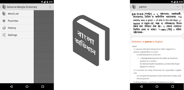 - It's a Offline Dictionary containing both English-to-Bangla definition and English-to-English definition for words.