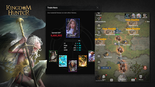 Lebih dari 140 Hero dengan skill unik untuk membantumu mengembangkan dan berjuang melalui dunia Kingdom Hunter. Setiap Hero juga dapat disesuaikan agar sesuai dengan kebutuhan Kingdommu, memberi kebebasan untuk mengembangkan Hero sesuai keinginanmu!