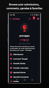 - Jelajahi cerita dan komentar yang Anda kirimkan, cerita dan komentar favorit, cerita dan komentar yang dipilih, cerita tersembunyi