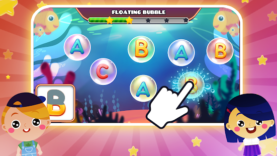 "Munculkan Bubbles with Letters!" Kumpulkan huruf yang benar untuk mengisi warna dalam surat yang tidak terisi. Pop yang salah dapat menghilangkan warna alfabet.