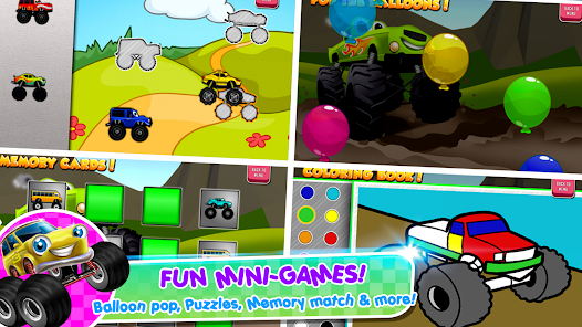 Monster Trucks Kids Game membantu anak Anda memahami mekanisme pendidikan menggunakan perangkat seluler dan tablet. dengan teka-teki, kartu memori, dan banyak aksi balap yang menyenangkan.