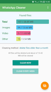 Cleaner for WhatsApp can find old files and delete them. You can completely delete all of the files it finds or just files that were downloaded more than a month ago. You can also enable automatic cleaning based on a schedule.