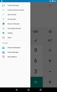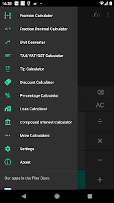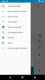 • Kalkulator Matematika dengan fungsi reguler dan ilmiah. Aplikasi ini menyimpan riwayat perhitungan.
