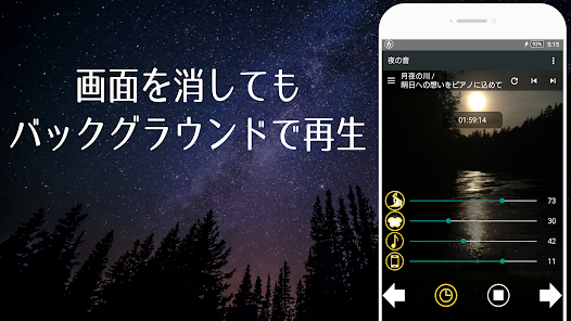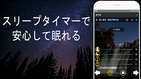 Because you can quit the application automatically by the sleep timer, just select the scene you like, set the timer and go to bed.
