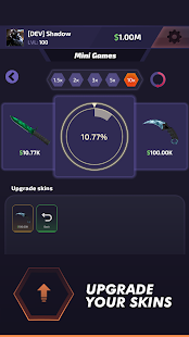 No matter you are looking for an endless case opener app to build up a powerful arsenal with upgraded weapons and knives, or you are looking for an advanced skin simulator to try out fresh and genuine skin, or you are looking for a unique idle clicking experience along with the option to try your luck by playing jackpot, rollbit and wheel of fortune, we’ve got you covered.