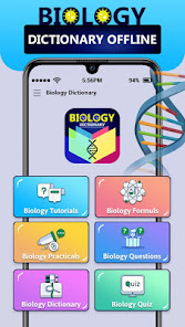 The Biology Dictionary has around six categories that deal with tutorials, formula, possible exam questions, biology practical, biology quiz and dictionary.