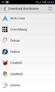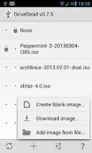 DriveDroid also includes a convenient download menu where you can download USB-images of a number of operating systems from your phone (like Mint, Ubuntu, Fedora, OpenSUSE and Arch Linux). Around 35 different systems are available at this moment.