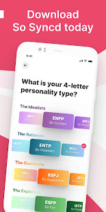 Apakah Anda mencari pasangan kepribadian yang sempurna? Jadi Syncd adalah aplikasi kencan untuk koneksi yang lebih dalam. Atau mungkin Anda telah menemukan seseorang yang spesial dan Anda ingin tahu lebih banyak tentang kecocokan Anda? Gunakan kalkulator kompatibilitas dalam aplikasi kami untuk saling memahami pada tingkat yang lebih dalam.