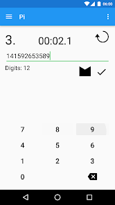 - Timed mode lets you type the digits from the beginning of the number and measures the time until the first error. See how many digits you typed per minute and improve on your achievements on the highscores page.