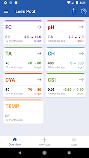 PoolMath memudahkan perawatan, pemeliharaan, dan pengelolaan kolam renang dengan melacak klorin, pH, alkalinitas, dan level lainnya untuk membantu menghitung berapa banyak garam, pemutih, dan bahan kimia lainnya yang ditambahkan. Teruslah berenang di TroubleFreePool Anda dengan Pool Math.