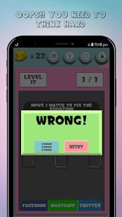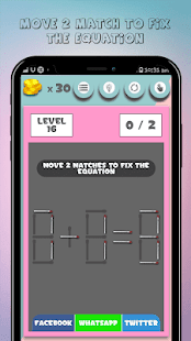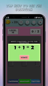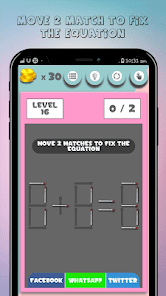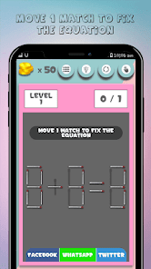 Matches Puzzle in a classic puzzle game with matches. The game's principle is simple: Solve puzzles by moving, adding and removing matches until you make the equation correct.