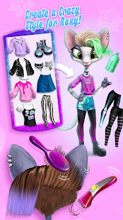 · Pilih gaya rambut edgy dan pakaian kucing keren untuk Roxy!