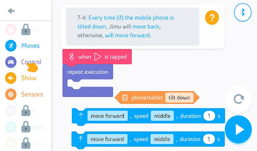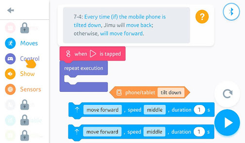 Aplikasi ini menggunakan instruksi 3D, 360 ° untuk memandu pengguna langkah demi langkah melalui proses pembangunan. Pengkodean yang memblok membuat pemrograman menjadi sederhana dan menyenangkan. Seret dan lepas blok yang saling terkait dari urutan yang dapat disesuaikan untuk membuat robot JIMU Anda bereaksi atau menggunakan sistem PRP (Pose, Record, Play) untuk lebih menyenangkan. Jika Anda baru mengenal coding, aplikasi ini berisi pelajaran yang menyenangkan bagi Anda untuk menjadi master coding Blockly. Untuk inovator sejati, aplikasi ini juga memungkinkan pengguna untuk merancang kreasi robot JIMU yang disesuaikan dan membaginya dengan komunitas.