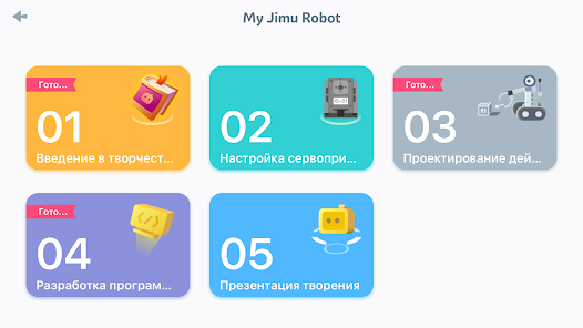 Gabungkan aplikasi ini dengan salah satu dari banyak kit Robot Jimu untuk membuat dan memprogram robot pintar.