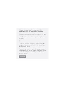 *** There are two ways to access the content in this app: Enter the unique username and password you were provided OR access the app from within your instituion (make sure you're connected to the right wifi network).
