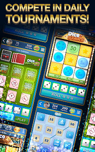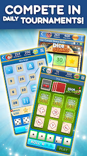 • Turnamen dadu adalah tantangan baru yang mendebarkan! Dice Solitaire, Dice Bingo, dan Dice Stars adalah cara baru untuk memainkan game klasik ini! Turnamen berjalan setiap hari!