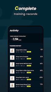 Halaman "Aktivitas" diurutkan berdasarkan tanggal, dan setiap catatan pelatihan disajikan secara lengkap. Mudah memeriksa jumlah putaran, waktu dan konsumsi kalori dari pelatihan kapan saja. Dengan memeriksa riwayat latihan Anda, lacak perubahan tubuh Anda secara komprehensif.