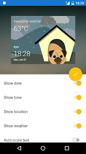 Anda akan mendapatkan real-time cuaca, waktu, tanggal dan lokasi update bersama-sama dengan gambar lucu dari pugs.