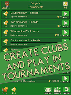 Alternatively, why not play in some Bridge tournaments or create your own Bridge club and play online against your family, friends and invited club members.