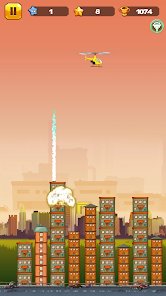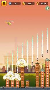 - Setiap tingkat atas, kecepatan helikopter akan meningkat dan Anda memerlukan taktik untuk menjatuhkan bom dengan lebih baik. Anda akan secara acak mendapatkan power up yang lebih mendukung untuk menghancurkan bangunan.