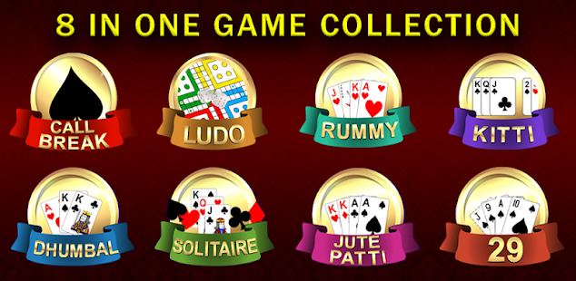Callbreak, Ludo, Rummy, Dhumbal, Kitti, Solitaire, dan Jutpatti adalah game yang paling populer di kalangan pemain board / card. Tidak seperti gim kartu lainnya, gim ini cukup mudah dipelajari dan dimainkan. Nikmati beberapa game dalam satu paket.