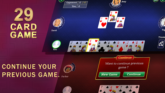 29 adalah permainan kartu pengambilan trik yang dimainkan di antara empat pemain dalam 2 tim. Dua pemain saling berhadapan untuk memenangkan trik dengan kartu peringkat tertinggi. Gilirannya berubah ke arah berlawanan arah jarum jam di mana setiap pemain harus mengajukan penawaran. Pemain dengan penawaran tertinggi adalah Pemenang Bid; mereka dapat memutuskan setelan truf. Jika tim pemenang tawaran memenangkan putaran itu, mereka mendapat 1 poin, dan jika kalah, mereka mendapatkan 1 poin negatif. 6 Hearts atau Diamonds menunjukkan skor positif, dan 6 Spades atau Clubs menunjukkan skor negatif. Sebuah tim menang ketika mereka mencetak 6 poin, atau ketika lawan mencetak 6 poin negatif.