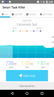 The amount of memory used is displayed in an easy-to-see graph. It can also automatically kill tasks to make everyday usage faster and your battery last longer.