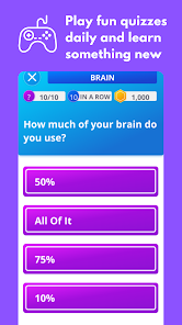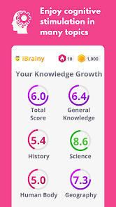 iBrainy menyertakan kuis trivia menyenangkan yang akan melatih otak Anda. Mainkan kuis hari ini untuk meningkatkan pengetahuan umum Anda. Ikuti tes IQ gratis dengan hasil instan, atau mainkan game pelatihan otak untuk mengasah pikiran dan meningkatkan keterampilan kognitif Anda.