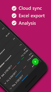 • Aplikasi kartu waktu / log kerja lintas platform, berfungsi untuk semua perangkat Anda (Android, Windows, iOS, macOS) termasuk. Sinkronisasi awan