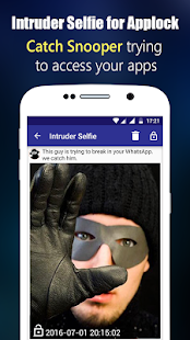 • Selfie Penyusup. Selfie instan diambil ketika seseorang mencoba kata sandi yang salah pada kunci aplikasi Anda.