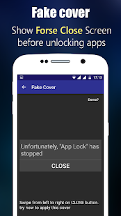 • Penutup kunci Aplikasi Palsu. Aktifkan keamanan ganda atau layar palsu di atas kunci aplikasi Anda. Anda dapat mengatur layar aplikasi tutup paksa untuk aplikasi yang terkunci.