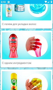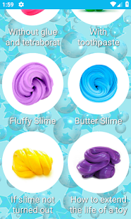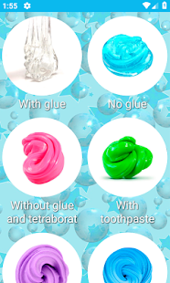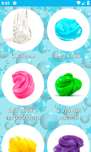 ⭐ Cara membuat slime - mudah digunakan. Di menu utama, Anda dapat melihat bagaimana mainan itu terlihat, dan kemudian pergi ke instruksi dengan bahan dan eksekusi slime langkah demi langkah.