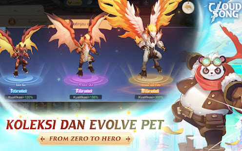 Pertempuran musuh, tingkatkan karakter kamu, dan kumpulkan hewan peliharaan di Cloud Song: Saga of Skywalkers ARPG ponsel kasual.