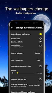 • Latar belakang otomatis berubah dengan interval yang ditentukan (wallpaper serigala hidup)